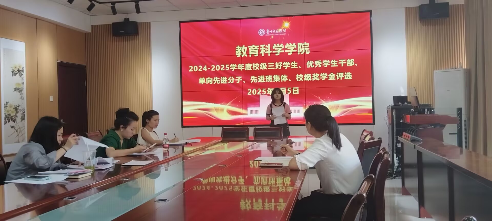 为充分发挥先进典型的示范引领作用,教育科学学院于9月5日在学院会议室组织召开2024-2025学年度校级评优评先会议。院党委副书记傅小芳、团委书记张源以及各班辅导员、学生代表到场参加。会议由学院对接学工部的辅导员张思远主持。