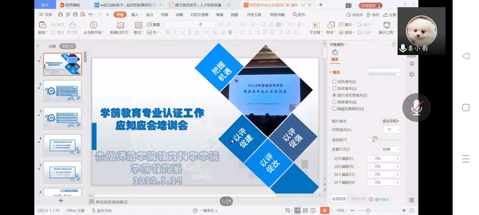 为贯彻落实全国教育工作会议精神,扎实推进学前教育专业师范专业认证工作,2022年3月24日下午1点,教育科学学院学前教育专业召开全体本科生师范专业认证应知应会培训会。培训会在腾讯会议线上进行,此次会议由系主任娄小韵主讲,学前教育专业全体学生参加。