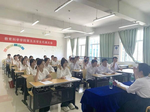 2025年8月27日,贵州royal皇家88平台第五次学生代表大会在逸夫楼501、502、504教室召开。教育科学学院党委副书记傅小芳、团委书记张源、校学生会代表、班级学生代表、45名学生代表参加了此次会议。